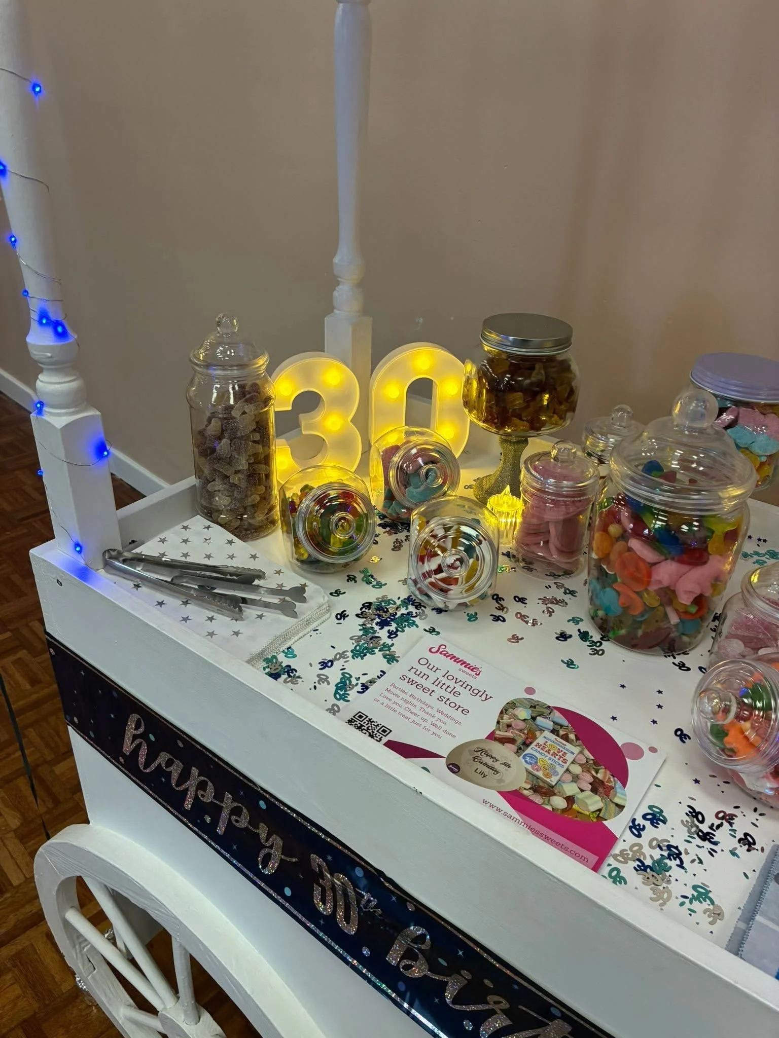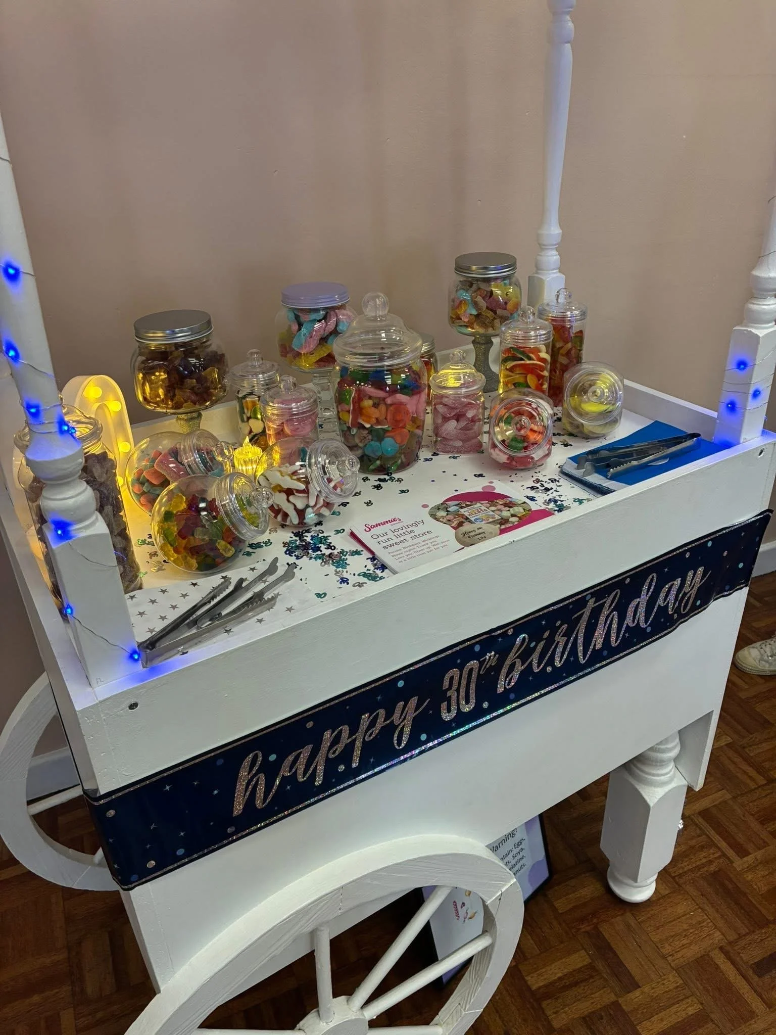 You can hire our sweet cart for your event in Blackpool or surrounding areas, you and your guests will love our gorgeous Sweet Cart. It is the perfect addition to your Wedding, Birthday Party, Christening or Special Event.